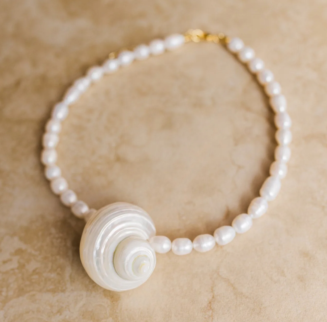 Experience the timeless elegance of SOLOMON, the pure pearl necklace boasting a stunning conch shell centerpiece. Adorn yourself with this exquisite piece and feel its natural beauty radiate.