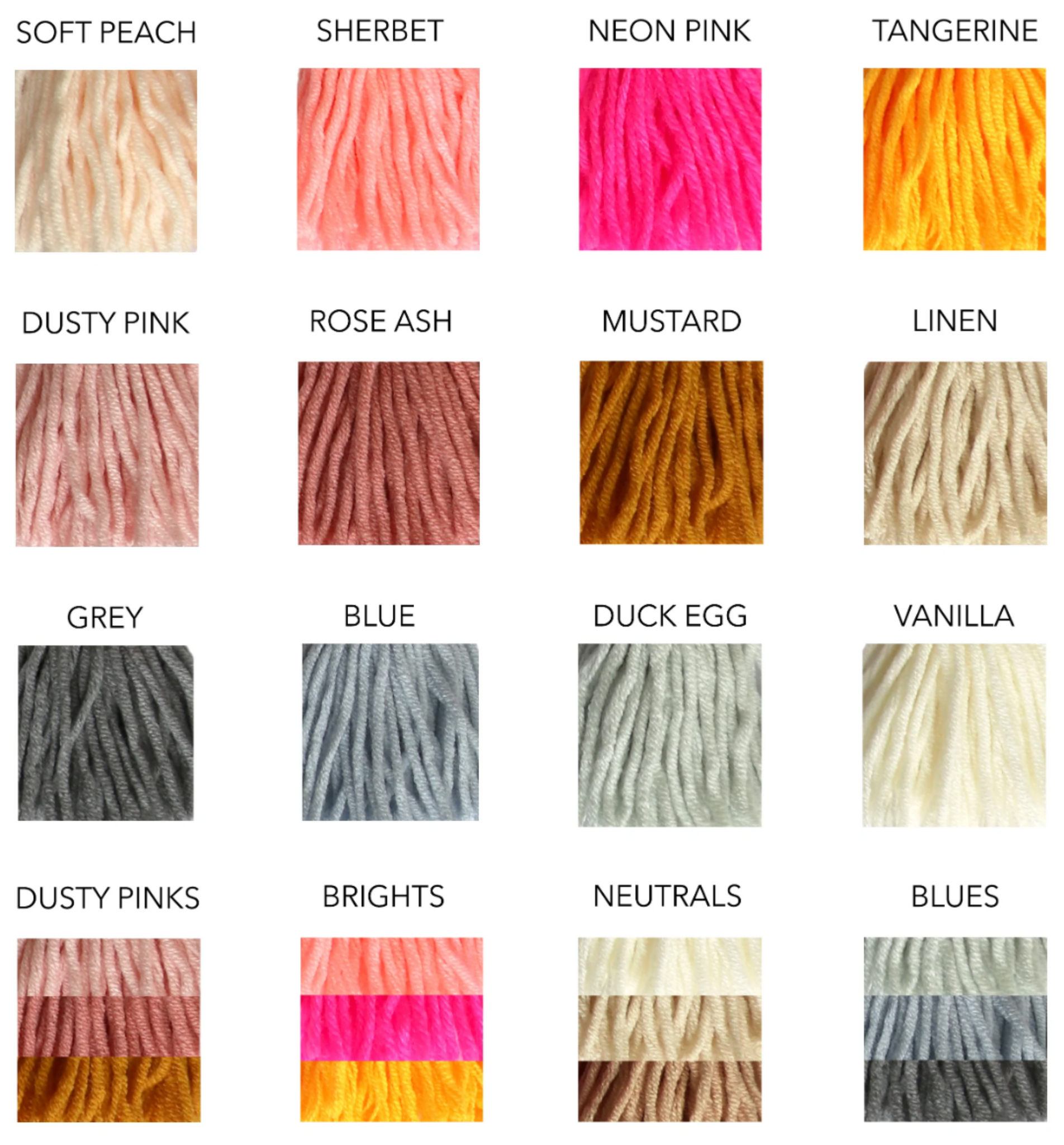14 x 8cm pompoms, on 2 meters of cotton cord.