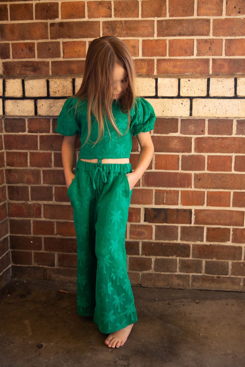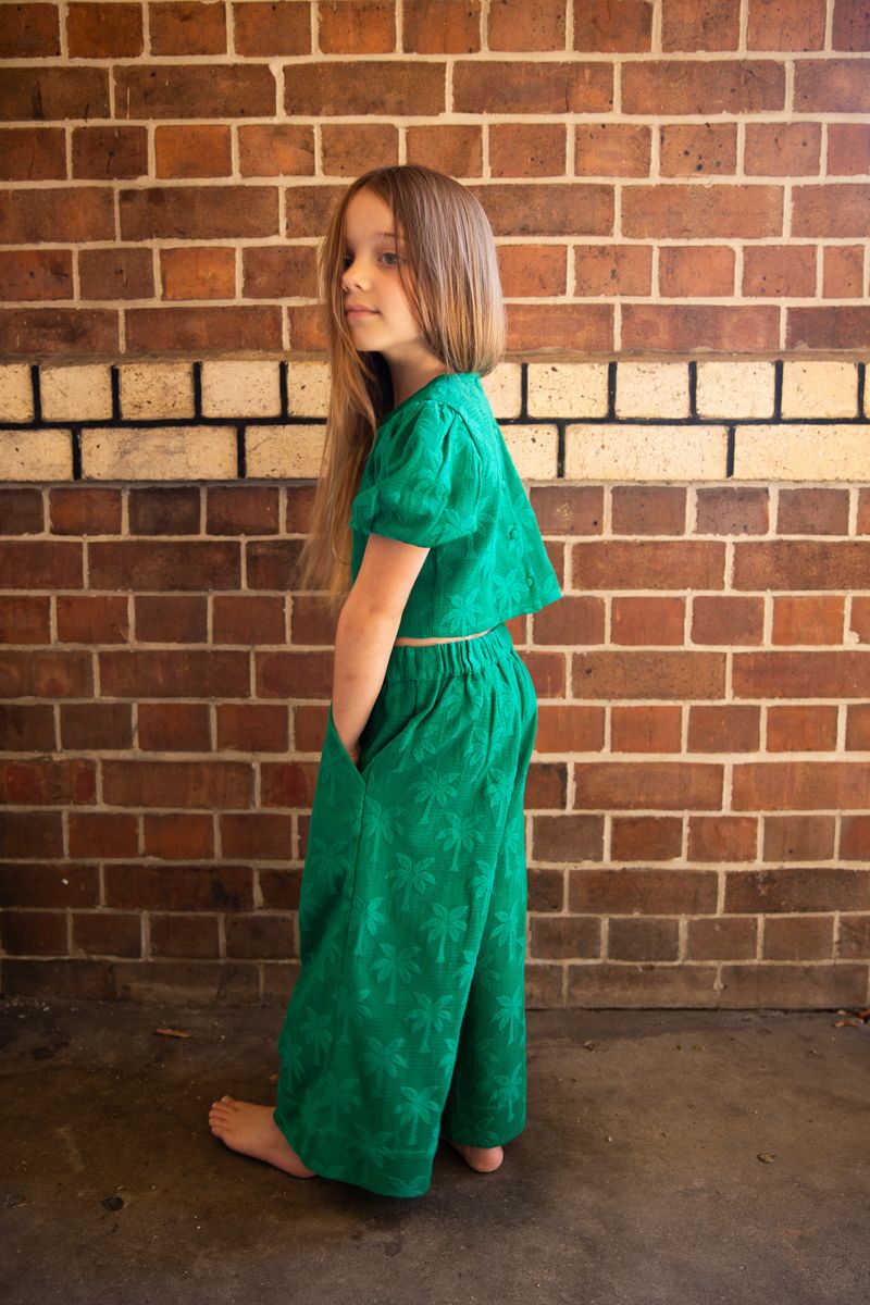 Playful cotton trousers that bring a splash of tropical charm with their delicate palm tree lace embellishment. Designed for comfort with a relaxed wide-leg fit and flexible waistband, they're lined to mid-thigh for a polished silhouette. Mix and match with the Sofia top for an instantly coordinated look.