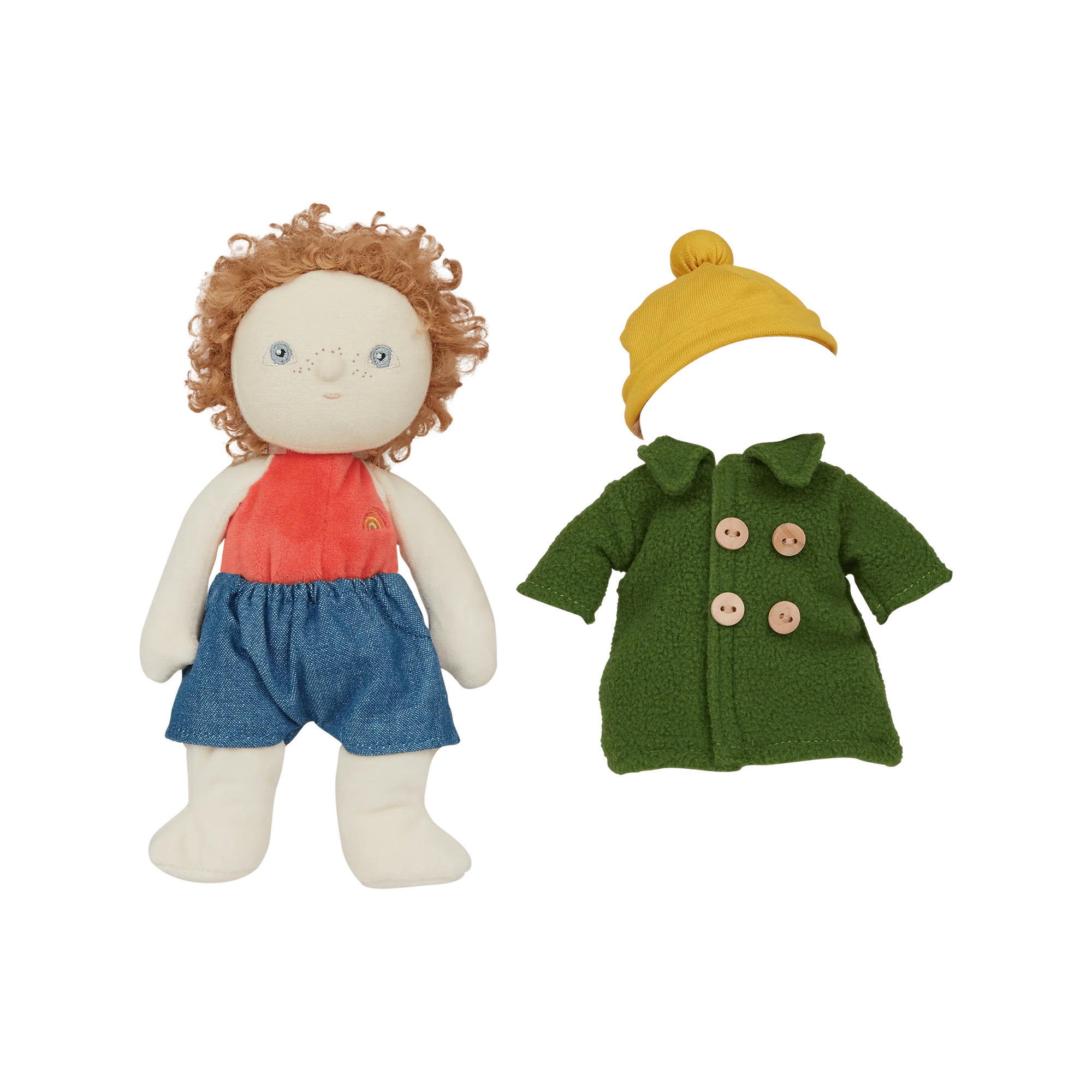 Dressed in a cheery yellow beanie and buttoned-up green trench coat, Charlie Chestnut is ready to dive into a world of make-believe! Will he lead a parade of Dinky's through the living room jungle, search for hidden treasures beneath the cushions, or dream up his next grand escapade in the garden? Charlie turns every day into a chance for big adventures, Dress Me Dinky’s are where stories begin, and memories are made, one outfit at a time. Charlie's little wardrobe is full of big dreams.