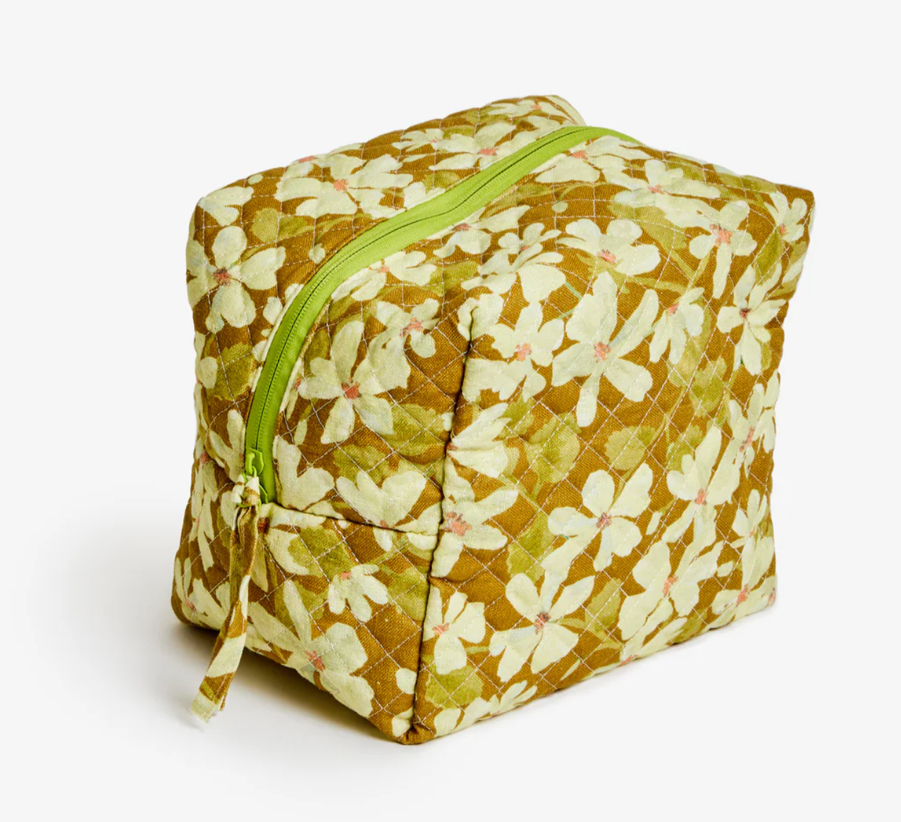 Crafted from a durable quilted linen and finished with Bonnie’s signature artwork, the Violet Mustard Large Toiletry Bag brings a balance of beauty and practicality to everyday organisation.