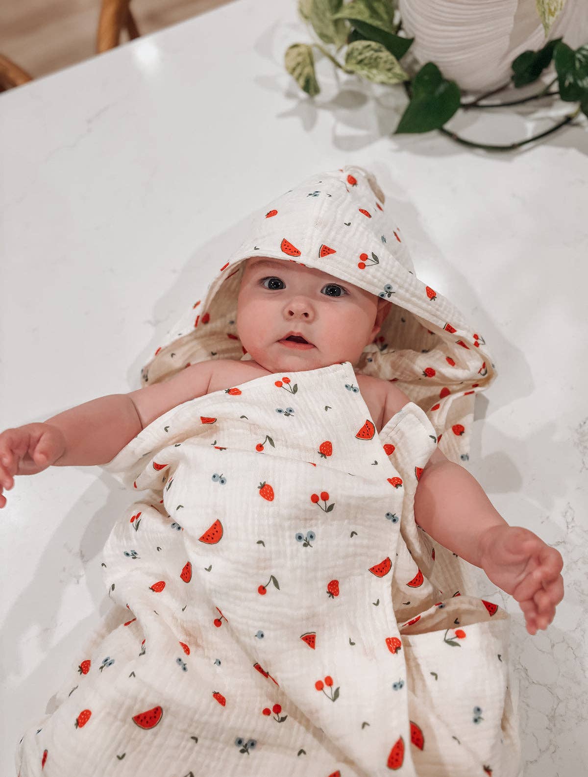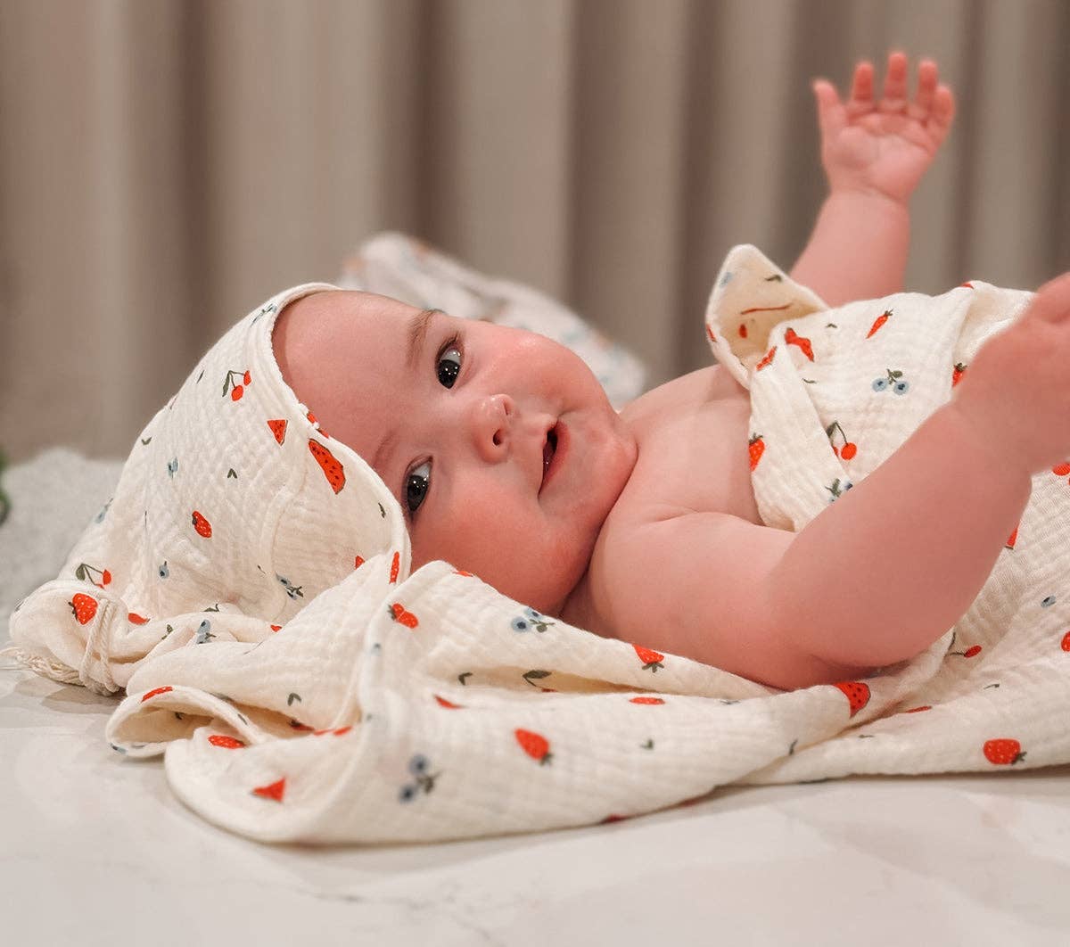 Made 4 layers of GOTS certified organic muslin these towels are absorbent and lightweight. The organic cotton is as soft as a cloud and gentle on delicate skin.